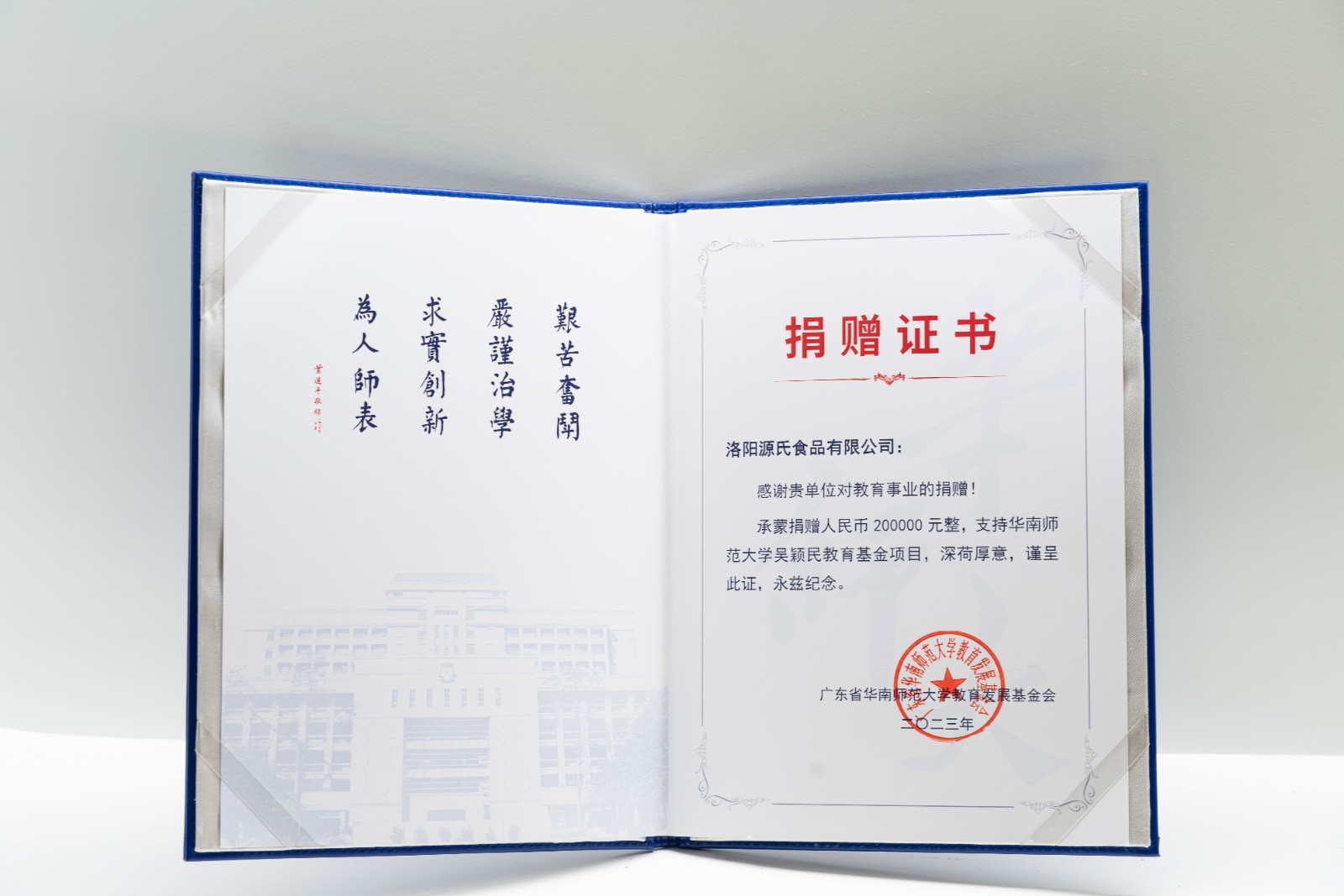源氏食品為華南師范大學(xué)吳穎民教育基金會(huì)捐贈(zèng)20萬(wàn)元